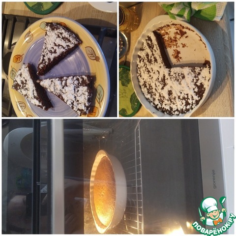 Вытаскиваем готовый манник из духовки и сразу же заливаем горячим молоком. Молоко я грела в МВ при 900 Вт - 1, 5 минуты. Если хотите манник послаще, то в молоке растворите 25 г сахара. Даем остыть маннику полностью, выкладываем на блюдо и посыпаем (по желанию) сахарной пудрой.