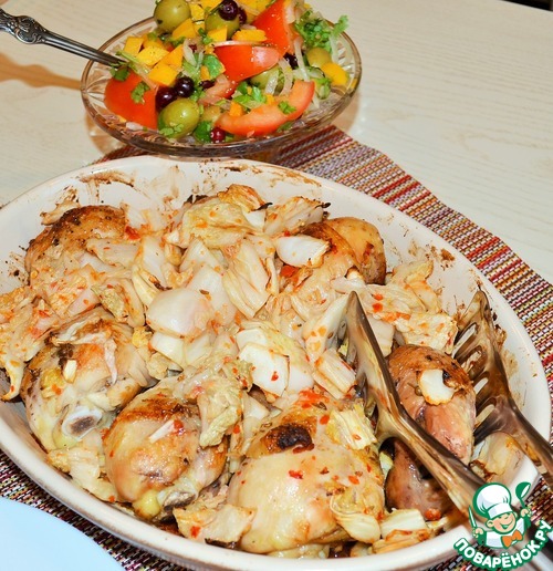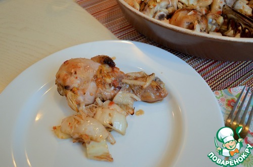 Обжаренные куриные голени тщательно обмазать данным маринадом и, выложив в блюдо, оставить на 1 час.
