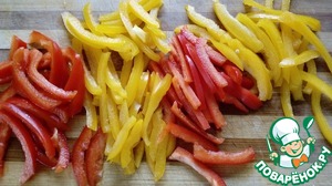 Болгарский перец порезать соломкой.