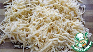 Щедро посыпать сыром и полить майонезом, в который можно выдавить дольку чеснока, или сметаной. |