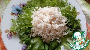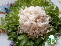 Рис полностью остудить. Выложить горкой на листья салата.