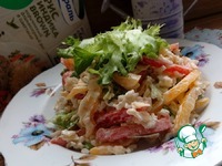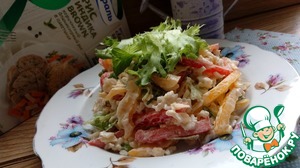 Подавать можно прямо так, а можно и смешать все, а при подаче украсить сверху салатными листьями. |
