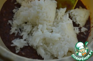 Лук очистить. Перекрутить лук и печень через мясорубку (блендер). В полученную массу добавить рис.