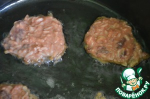 На разогретую сковороду с растительным маслом выкладывать ложкой массу и жарить котлетки-блинчики на быстром огне с двух сторон.