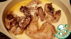 Затем накрыть крышкой и томить курочку на небольшом огне до готовности, около 20 минут, в зависимости от Вашей курочки, посудины и плиты. Курица приобретёт бесподобный сливочный вкус... -