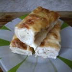 На рабочей поверхности раскладываем лаваш. Разделяем на части. Я разрезала по линиям сгиба, как был сложен в упаковке. Всего получилось 8 частей.