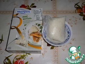 Отвариваем до готовности в слегка подсоленной воде 1 пакетик риса. Я использую рис "Янтарь" ТМ "Мистраль".