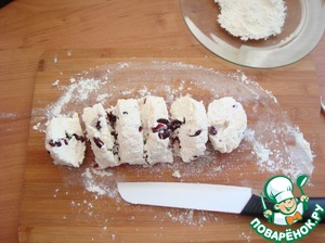 Нож мочим водой и "колбаску" режем на равные части. У меня получилось 6 сырников.