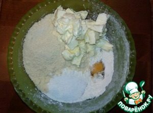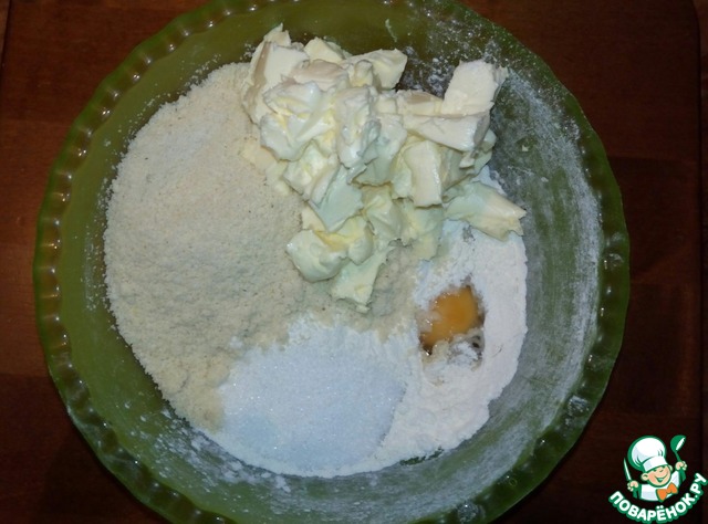Из перечисленных продуктов замесить однородное тесто, завернуть его в пищевую плёнку и положить в холодильник на 60 минут.