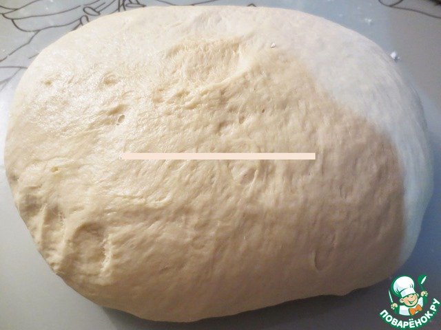 Когда тесто поднимется его нужно еще раз обмять, накрыть и дать подойти снова.