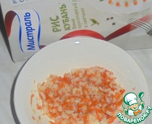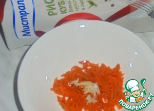 Добавляем рис к моркови и перемешиваем.