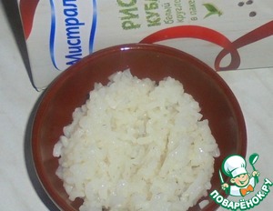 Вареный рис достаем из пакетика и берем нужное количество.