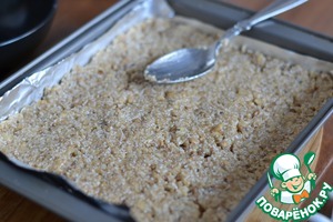 Тесто высыпать в форму и ложкой хорошенько распределить и придавить ко дну формы (фольге).