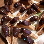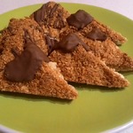 Выкладываем треугольники на бумагу для выпечки шоколадом вверх,