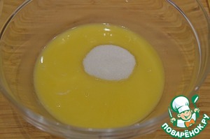 Растопить масло, добавить сахар и мешать, пока не растворится.