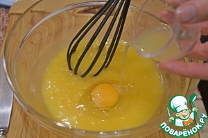 Вбить по одному яйца, одновременно частями вливая лимонный сок.