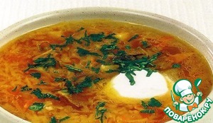 5 Держать щи примерно 45 мин, затем убавить температуру до 120 градусов и томить их еще 1,5 ч также под крышкой.