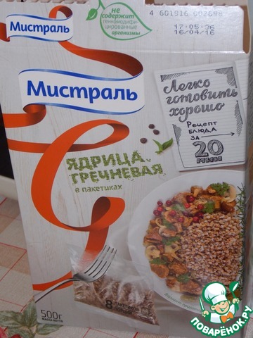 Гречку ТМ МИСТРАЛЬ отварить до готовности.