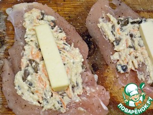 Прекрасная хрустящая корочка из теста, внутри сочное куриное мясо с пикантной начинкой. Даже не знаю к чему ее отнести. По виду выпечка, но очень сытная как второе блюдо. Да что там говорить, приготовьте и сами решите что это для Вас.