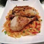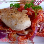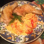 Выкладываем на тарелки соус-салат, курочку и подаём.