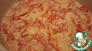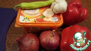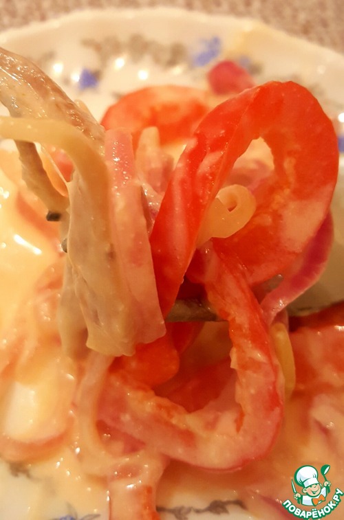 перец пимент и оливковое масло, вместо болгарского перца и сметаны.