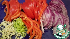 Овощи вымыть, почистить и нарезать полукольцами толщиной около 1 мм. Чеснок и острый перчик измельчить, я удаляю семена из острого перца.