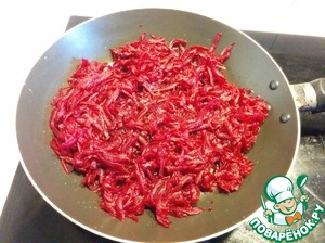 Для начинки натираем свеклу на крупной тёрке, добавляем тимьян и полчашки воды. Готовим на маленьком огне, пока вся жидкость не выпарится до готовности (минут 20). При необходимости подливаем еще воды.