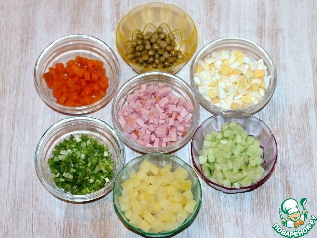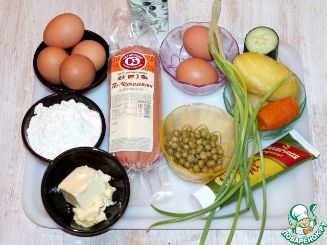 Ингредиенты для «Воздушные профитроли с салатом "Оливье"»:
