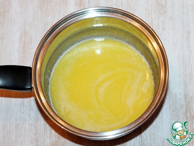 2. Приготовим тесто для профитролей. Размешиваем сливочное масло и соль в горячей воде. Доводим смесь до кипения.