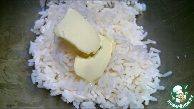 К рису добавляется сливочное масло.
