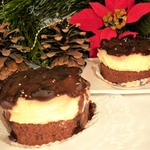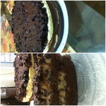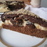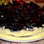 Залить остывшей шоколадной глазурью. Поставить в холодильник на пару часов (можно на ночь). Кстати, в доме, где нас угощали таким тортом, хозяйка подавала торт прямо в форме. То есть сборка была такова:бисквит оставался в форме для выпечки, сверху выложен пудинговый крем, чернослив и глазурь. Торт резался прямо в форме и подавался кусочками. Тоже неплохой вариант, менее хлопотный.