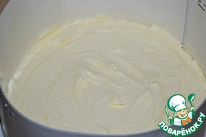 На бисквит выложить пудинговый крем, разровнять поверхность.