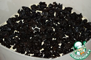 Сверху равномерно выложить нарезанный чернослив.