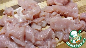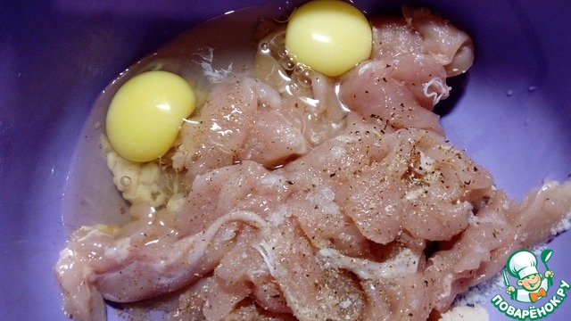 Курицу смешать с яйцами, посолить, натереть на терке мускатный орех.