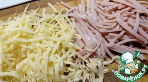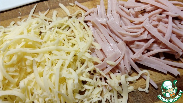 Сыр натереть на терке, ветчину порезать тонкой соломкой.
