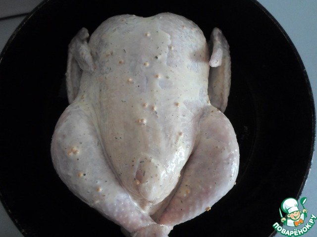 Курица получилась вкусная, но.....картошка внутри была полу сырая, пришлось ее вытаскивать и обжаривать в сковороде