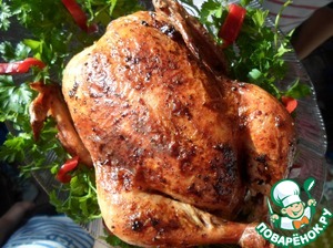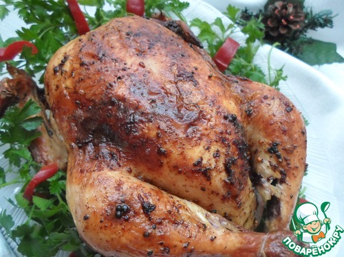Рецептиком этой нежнейшей курочки, со мной поделилась жена моего двоюродного брата (они живут в г. Волжском). Она всегда запекает такую курочку к Новому году. Вкус и внешний вид всегда получаются сногсшибательные. Сладость курочке придает красный сладкий перец, а превосходный перечный аромат придают семена горчицы. Ну а соевый соус дарит свой оригинальный вкус.