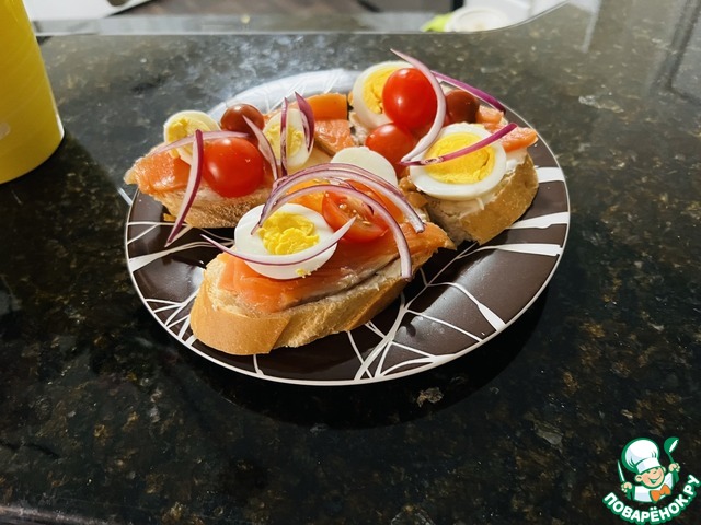 Ингредиенты для «Бутерброд с форелью и яйцом»: