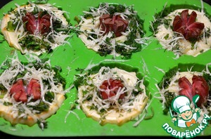 Выпекать 20 минут в разогретой до 180 градусов духовке. Затем посыпать тёртым сыром и нарезанным укропом.