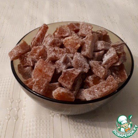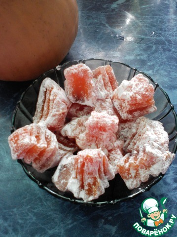 Это не цукаты, это просто рахат лукум какой-то! Да еще с пряным имбирным вкусом! В интернете много рецептов цукатов из тыквы. Я постаралась соединить их, кое-что добавить и нашла свой, тот который мне наиболее подходит. Теперь делюсь с вами.