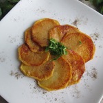 Вот и я добавляю "цветочек" в коллекцию отчётов! Применила свой способ! Нарезала, обсушила и разложила кружочки внахлёст на салфетке. С салфеткой и переворачивала на сковородку! После обжарки на вторую сторону перевернула хорошо! Оксана, очень вкусно и интересно! Иногда можно так экспериментировать! Спасибо за рецепт!
