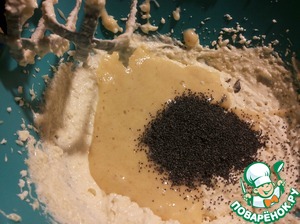 Добавляем банан и мак к основной творожно-сырной массе.