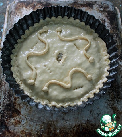 Яйцо взбейте с сахаром и смажьте вверх пирога.