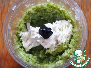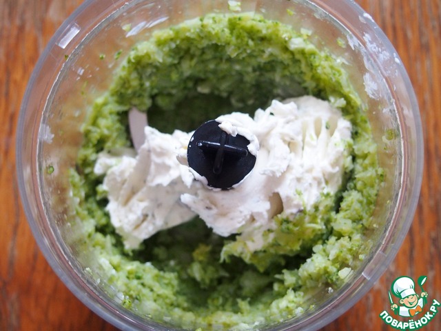 Брокколи отварить в подсоленной воде, а затем поместить в блендер.
