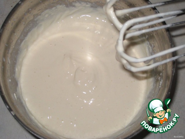 Яйца взбить с сахаром до пышной пены, смешать с творожной массой.
