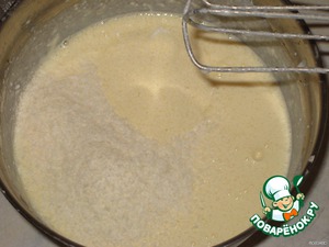 Добавить манку, крахмал, миндальную крошку, кокосовую стружку, перемешать.