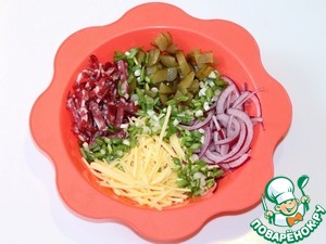 7. Соединить в миске приготовленные ингредиенты, перемешать.