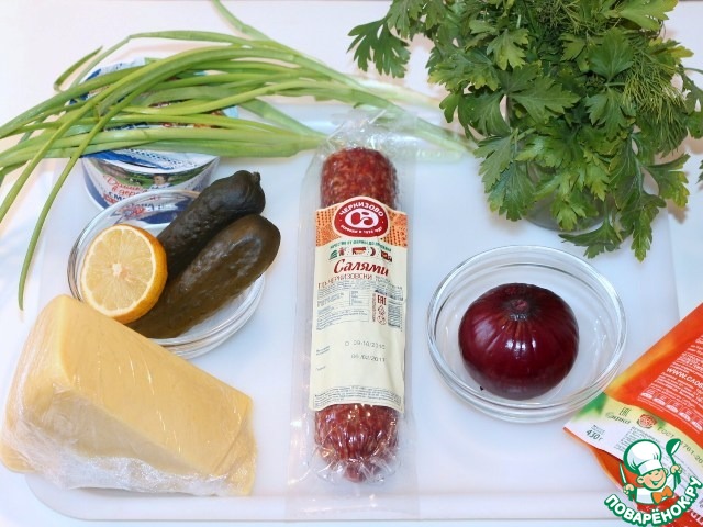 - Колбаса (сырокопченая, "Салями по-Черкизовски") — 200 г