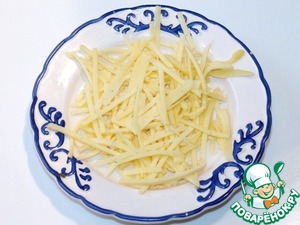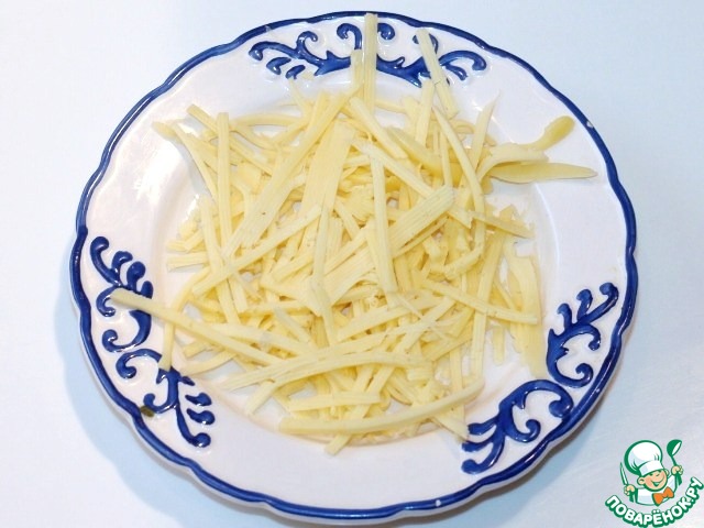 5. Сыр натереть на тёрке для приготовления моркови по-корейски.