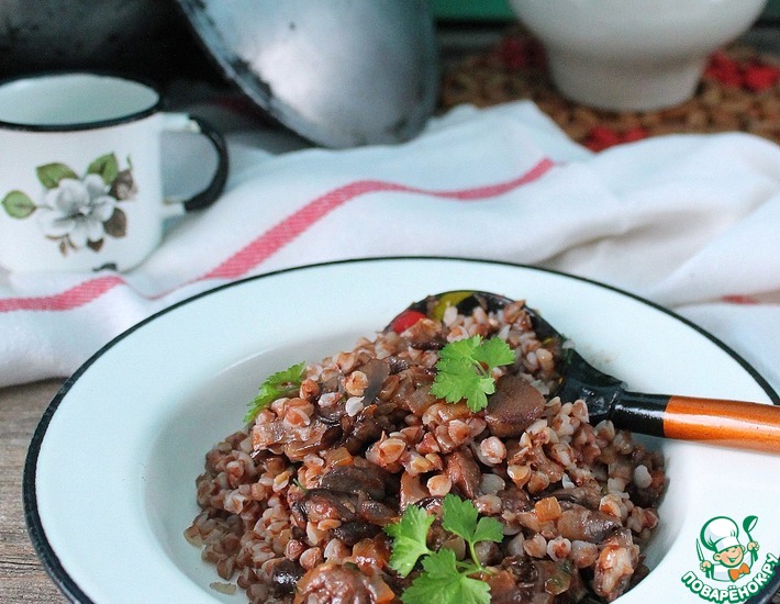 Гречка с грибами уже вкусно! А гречка с грибами в чугунке (или в горшочках) еще вкуснее! Отлично будет как в качестве основного блюда, так и в качестве гарнира! Подходит для поста!